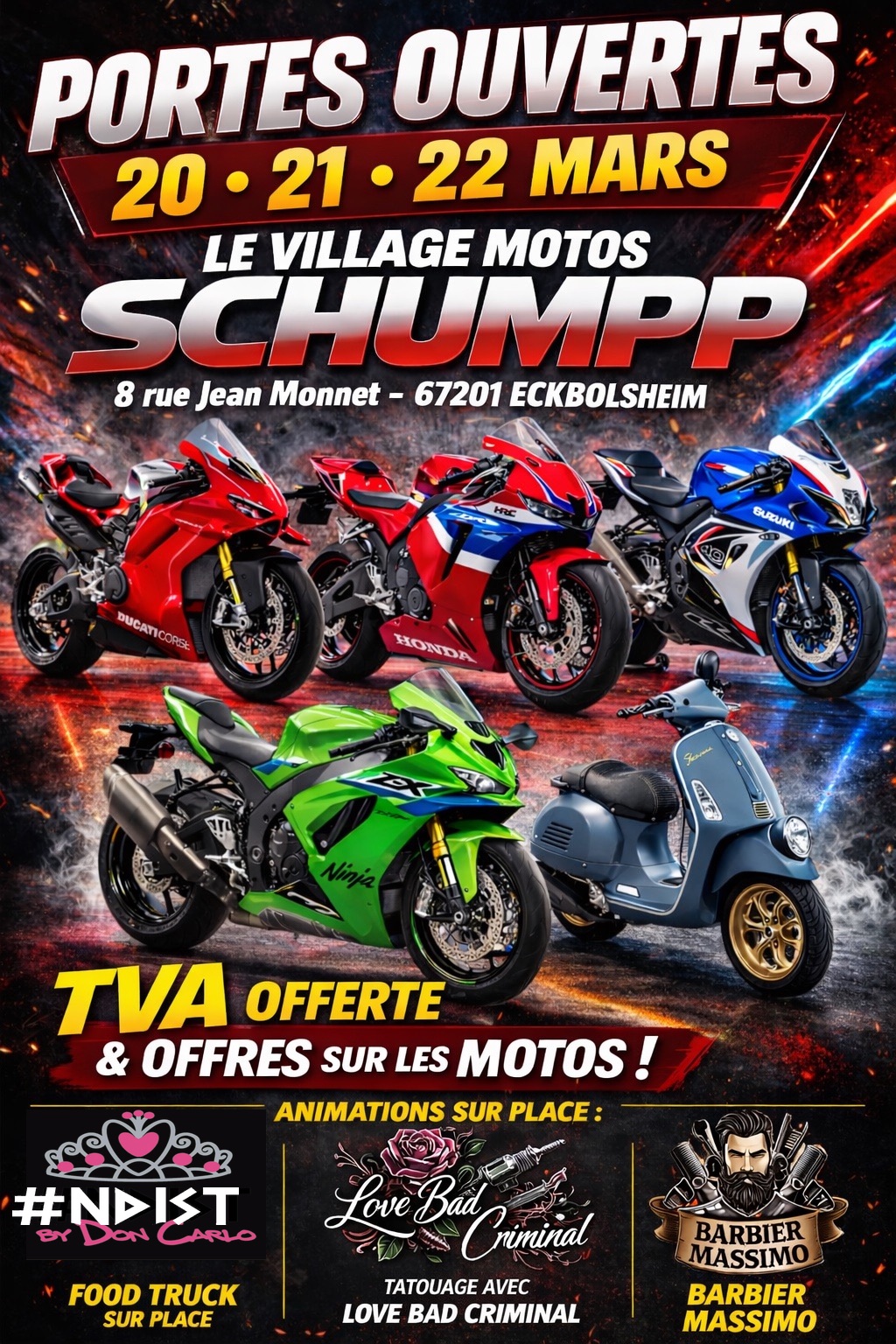 Le Village Motos Schumpp vous ouvre ses portes les 20, 21 et 22 mars 2026 pour un week-end exceptionnel dédié à la passion moto !